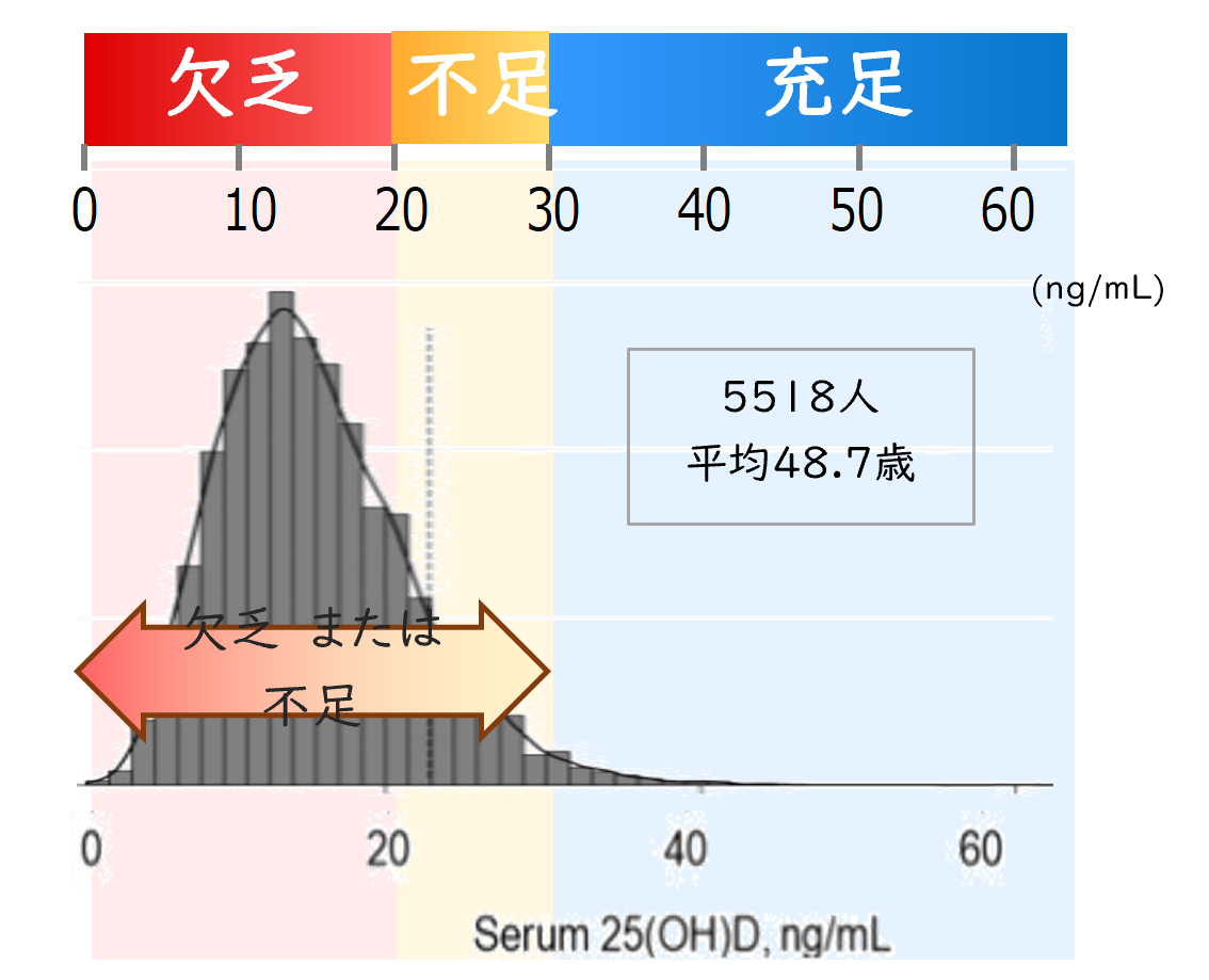 日本での調査で、約98%で不足(欠乏)しているとの結果があります。(下図)